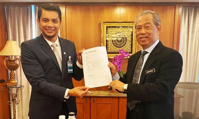 Terdahulu Adun Titi Serong, Perak itu menyerahkan nombor keahlian Bersatu kepada Muhyiddin yang juga presiden parti itu di pejabat perdana menteri di bangunan Parlimen, hari ini.